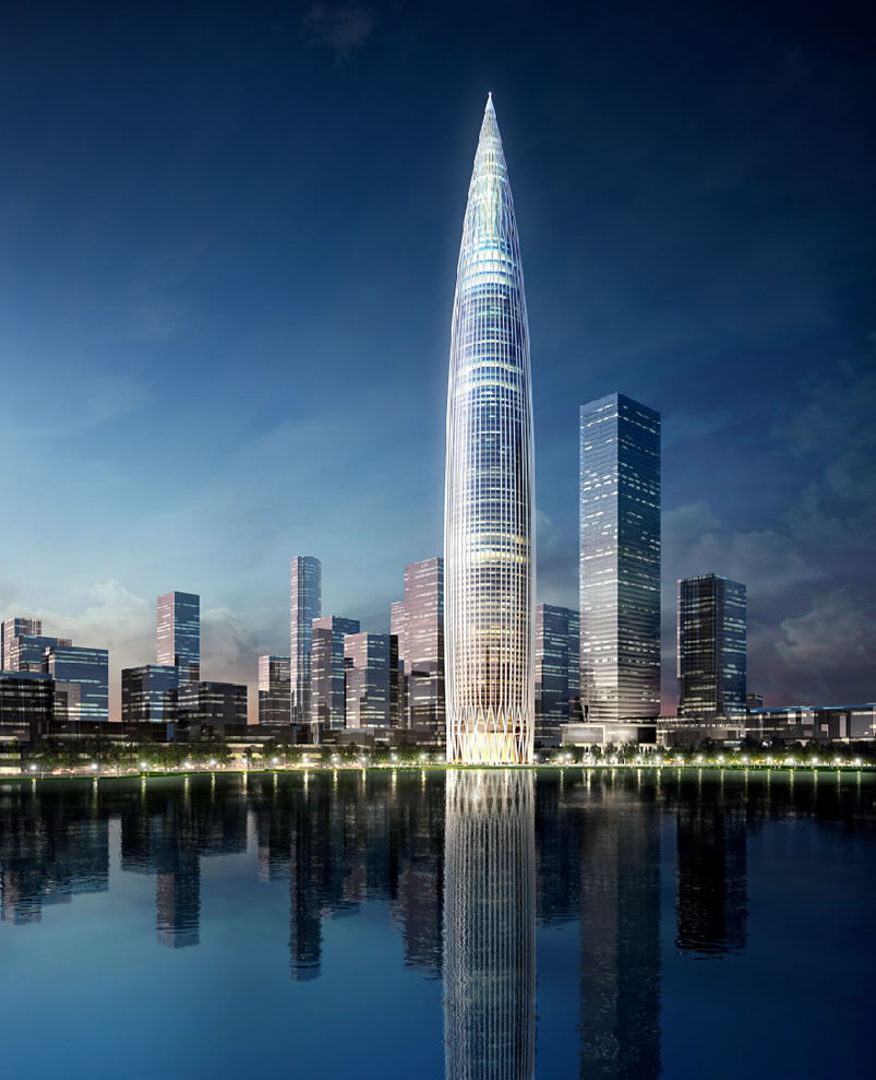 工程位于深圳市后海填海區,中國華潤大廈采用“春筍”設計理念,象征積極向上的生命力,56根鋼柱匯聚于塔尖,象征56個民族團結一心。項目在全國范圍內首次采用中建三局自主研發的微凸點智能頂升模架系統,受到中央電視臺等多家媒體關注報道。主樓高度163.95米,用鋼量4500噸。