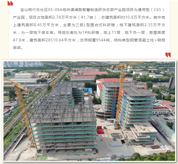 上海寶山楊行產業園項目鋼結構工程1#樓封頂