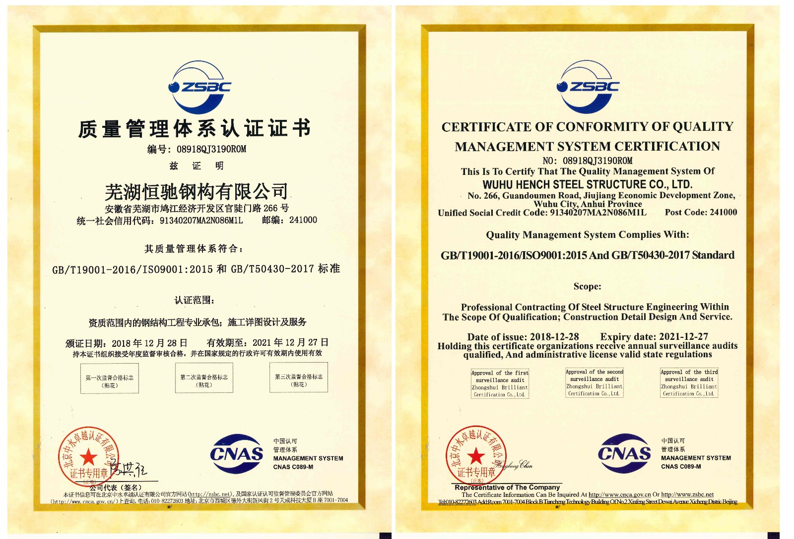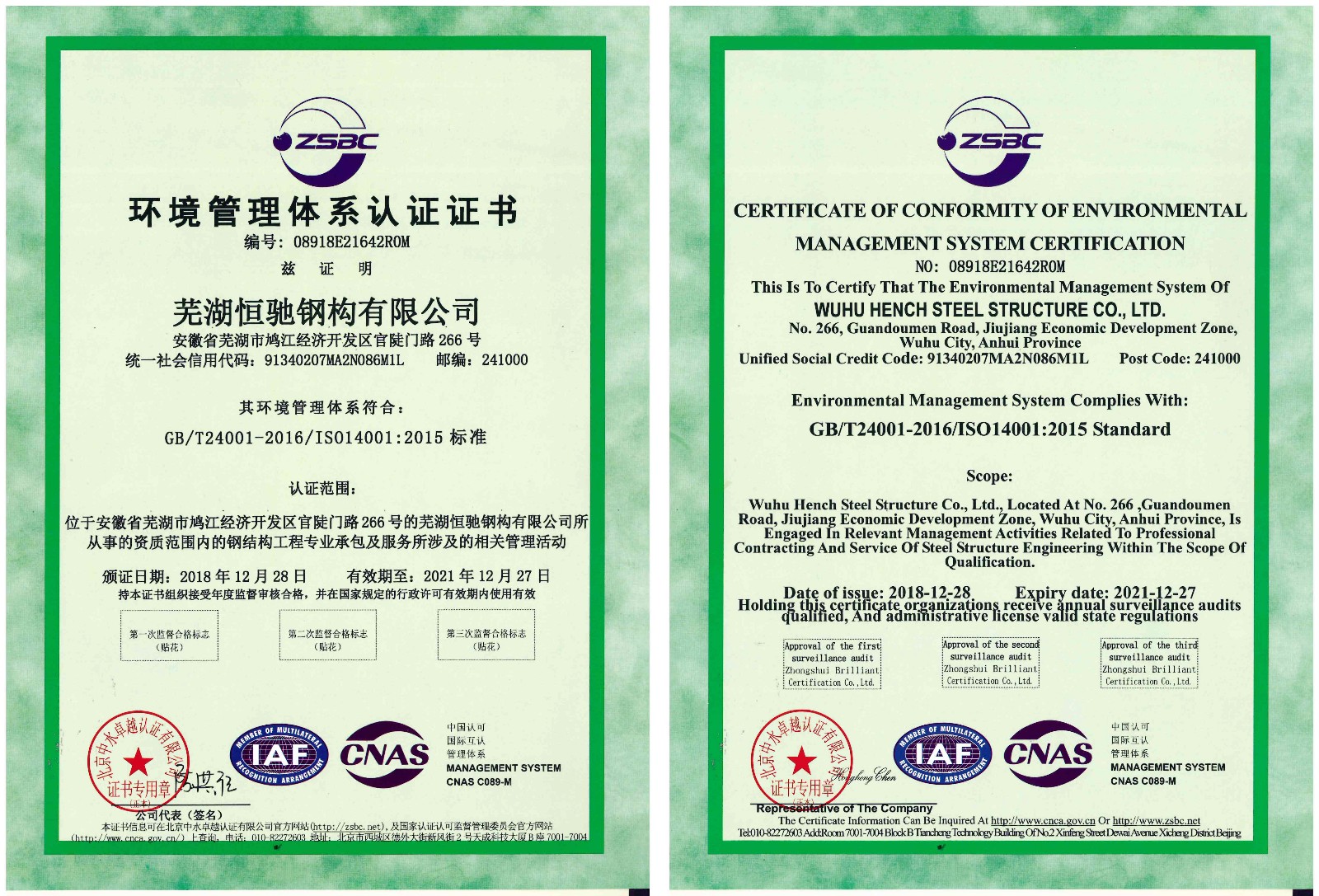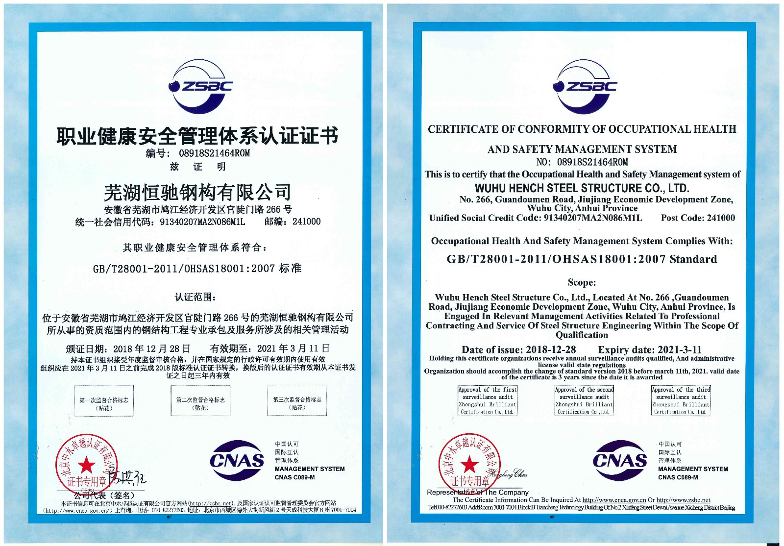 2018年12月11日北京中水卓越認證有限公司專家團蒞臨我司,進行為期六天的企業質量管理、環境管理、職業健康安全管理體系認證工作。認證期間專家團嚴格參照認證標準,對我司各項管理工作進行全面審核。最終公司憑借過硬的管理流程及完善的內控資料,順利通過體系認證。2018年12月28日,公司獲得ISO9001質量管理體系認證證書、ISO14001環境管理體系認證證書、OHS18001職業健康安全管理體系認證證書。三體系認證證書的獲取,是我司走向企業管理現代化和規范化的重要標志,也對我司樹立良好的企業形象產生了深遠影響。